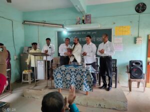 सभेचा प्रारंभ मान्यवरांच्या हस्ते दीपप्रज्वलन व सरस्वती पूजनाने झाला. या प्रसंगी श्रीमती रखुमाई पांडुरंग पालशेतकर माध्यमिक व उच्च माध्यमिक विद्यालयाचे मुख्याध्यापक श्री. बोलभट उपस्थित होते. त्यांच्या हस्ते सर्व मान्यवरांचे स्वागत व सन्मान करण्यात आला.