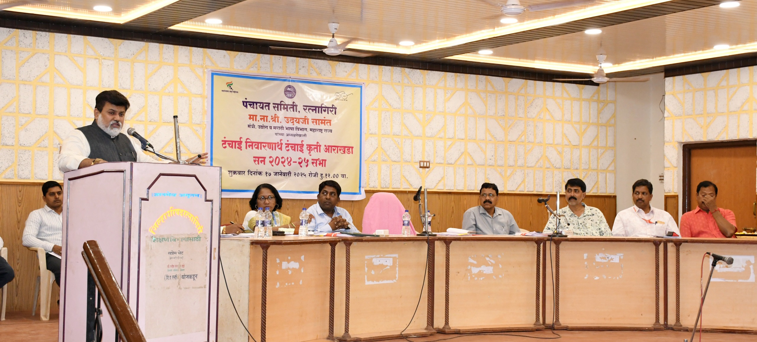 सुरुवातीला छत्रपती शिवाजी महाराजांच्या अर्धपुतळ्यास पुष्पहार अर्पण करण्यात आला. प्रांताधिकारी श्री. देसाई आणि गटविकास अधिकारी श्री. जाधव यांनी ग्रामपंचायतींना पाणी टंचाईबाबत आढावा घेतला.