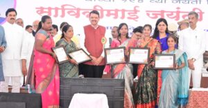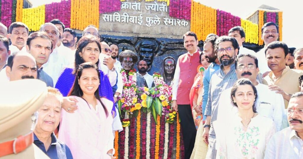 मुख्यमंत्री देवेंद्र फडणवीस यांनी क्रांतिज्योती सावित्रीबाईफुले यांच्या जन्मस्थळी असलेल्या स्मारकास पुष्पहार अर्पण करुन अभिवादन केले. तसेच ‘ज्ञानज्योती सावित्रीबाई फुले’ शिल्पसृष्टीचीही पाहणी केली. या ठिकाणी स्मारक उभारणी आराखड्याचे सादरीकरण करण्यात आले.